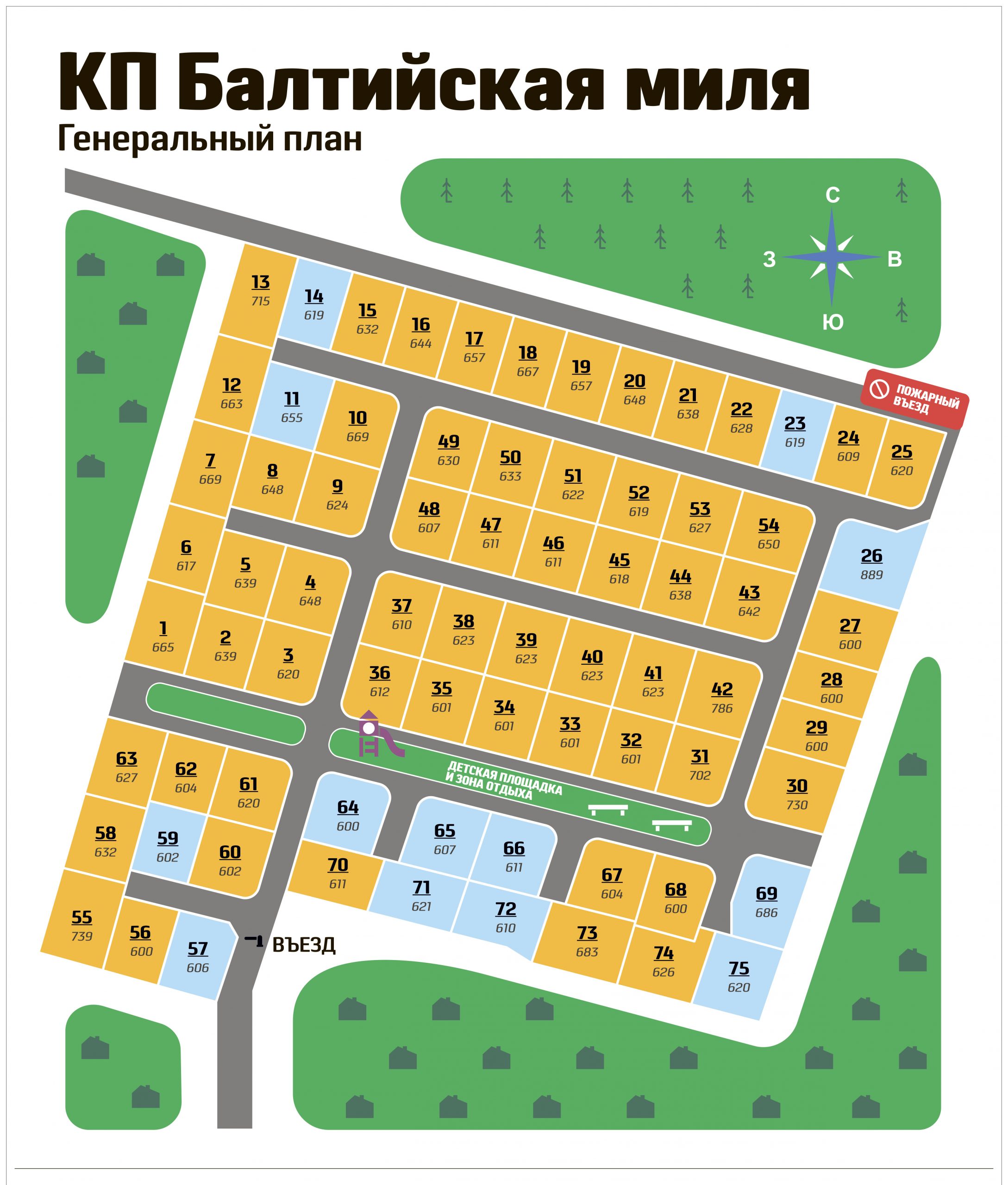 Площади участков: от 6 до 9 соток