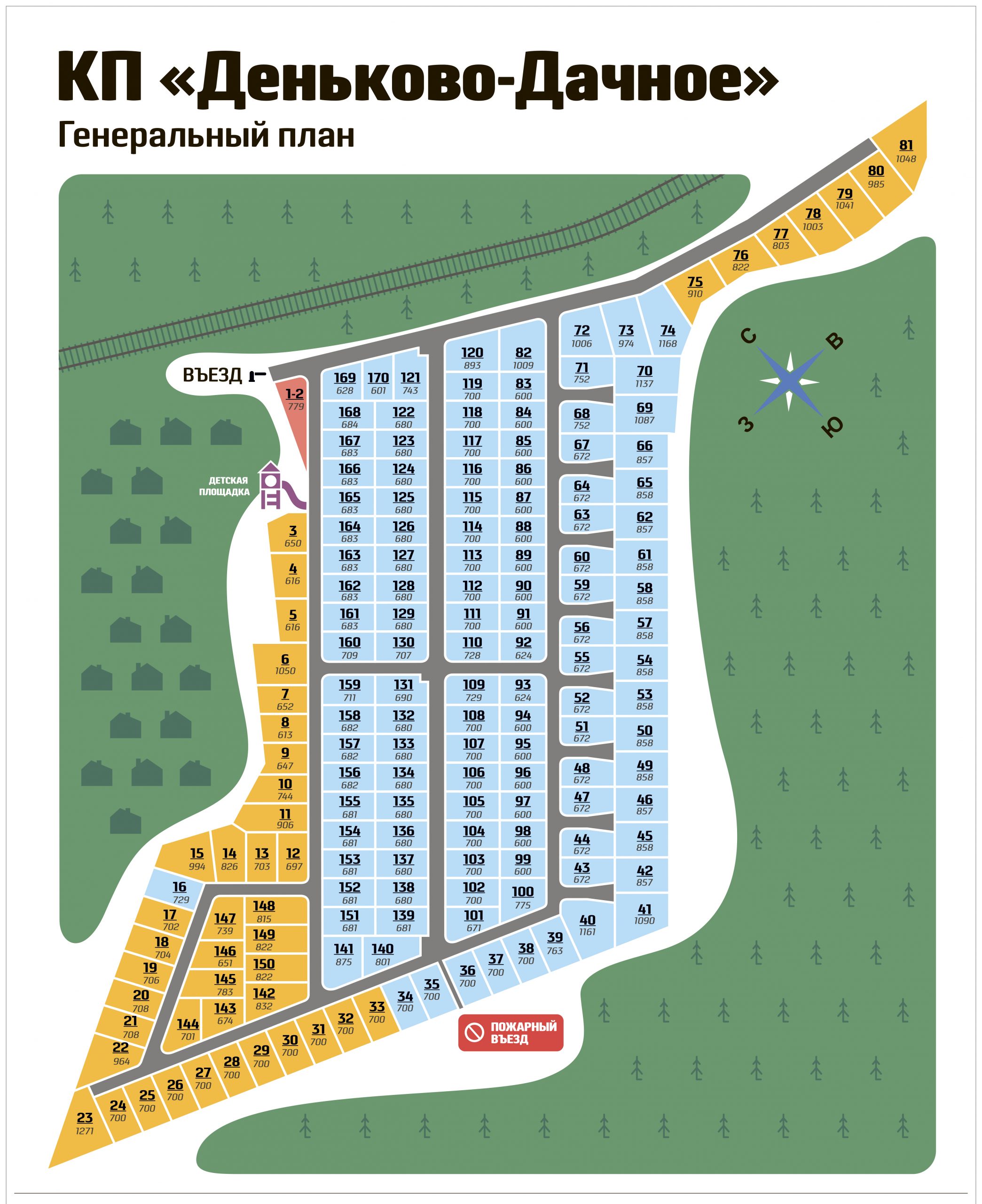 В соответствии с проектом, в Деньково-Дачное сделаны дороги с твердым покрытием (асфальтовая крошка), въездная группа, детская площадка, гостевая парковка, спортивная площадка.