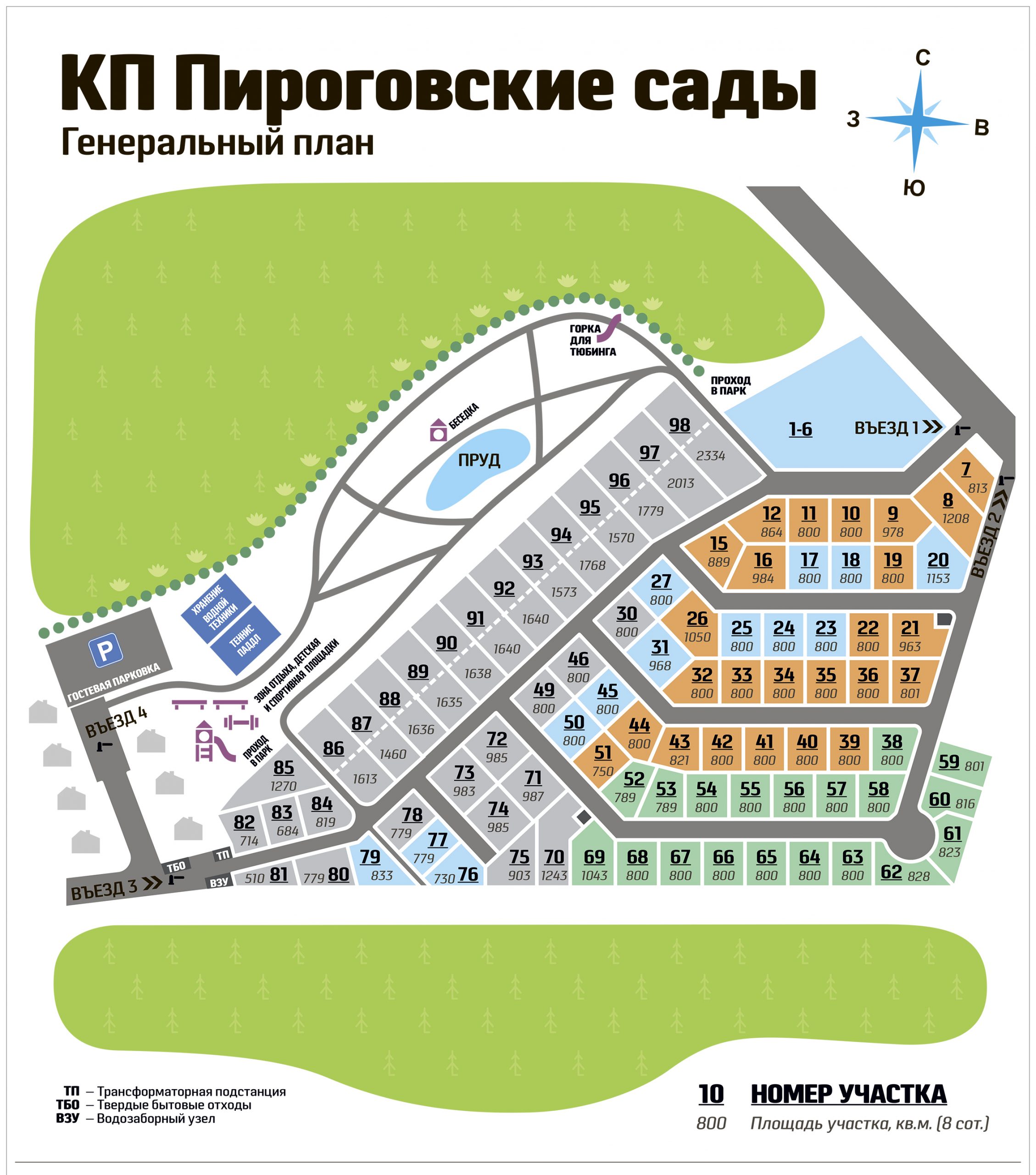 Поселок Пироговские сады насчитывает 98 участков под индивидуальную жилую застройку с площадью от 8 до 12 соток. Он создается на территории 17 га, из них под застройку отведено около 10 га, остальное зона рекреации. Пироговские сады по проекту — это поселок бизнес-класса с въездной группой, пунктом охраны, офисом администрации, специальными техническими зонами для размещения центральных коммуникаций, детской площадкой, спортивными объектами, прогулочной зоной и пр. Обязательным будут единый стиль фронтальных ограждений. Ширина дорог 12–14 метров, что позволит сделать улицы широкими, с пешеходной зоной.
